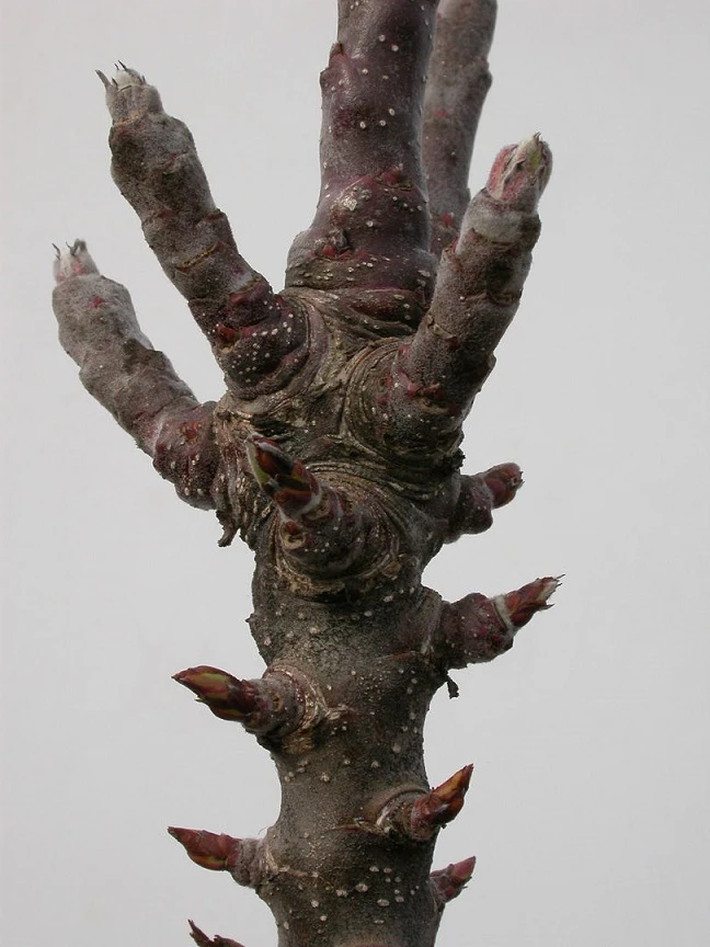 Wuchs: Sehr langsam wachsend. Kurze Triebabstände, wodurch der “kaktusartige” Wuchs entsteht. Sehr robuste Sorte mit hoher Schorf- und Mehltautoleranz. Wuchshöhe nur ca. 2 Meter im Alter.